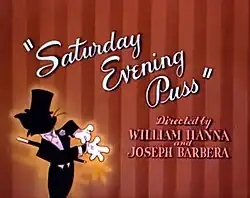 Saturday Evening Puss is a 1950 one-reel animated cartoon and is the 48th Tom and Jerry short directed by William Hanna and Joseph Barbera.[1] The cartoon was released on January 14, 1950, produced by Fred Quimby, scored by Scott Bradley and animated by Ed Barge, Kenneth Muse, Irven Spence and Ray Patterson. It is the only Tom and Jerry cartoon to feature Mammy Two Shoes' face on-screen, though only briefly. A re-edited version was produced in the 1960s, replacing Mammy with a white teenage girl.[2]