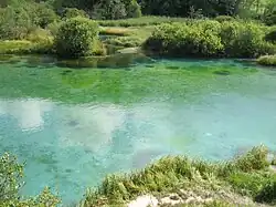 The Sava Dolinka is a headwater of the Sava River in northwestern Slovenia. The 45 kilometres (28 mi) long Sava Dolinka[1] starts as Nadiža Creek in the Planica Valley under Mount Zadnja Ponca in the Julian Alps, at an elevation of 1222 m, close to the Italian border. The stream goes underground soon after its source and breaks out again after 5 km at an elevation of 842 m in Zelenci, near Kranjska Gora. The Sava Dolinka flows through Kranjska Gora, Gozd Martuljek, Jesenice, between Bled and Breg, and past the town of Lesce. The first in a series of hydroelectric power plants on the river, the Moste Hydro Power Plant (22.5 MW), is located near Žirovnica. It merges with the second major headwater of the Sava, the Sava Bohinjka, at Radovljica. Tributaries of the Sava Dolinka include the Triglav Bistrica at Mojstrana and the Radovna, which flows through the Vintgar Gorge near Bled.