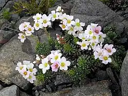 Saxifraga marginata, the Kabschia saxifrage, is a species of flowering plant in the family Saxifragaceae, native to southeastern Europe.[1][2] It and its cultivar 'Balkan' (formerly the rocheliana subtaxon) have both gained the Royal Horticultural Society's Award of Garden Merit as ornamentals.[3][4]