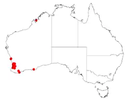 It is found in the IBRA regions of Geraldton Sandplains, the Swan Coastal Plain and the Jarrah Forest.[3]