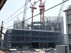 Bamboo scaffolding was first introduced into the building industry in Hong Kong immediately after colonization in the 1800s.[19][20] It was widely used in the building of houses and multi-story buildings (up to four stories high) prior to the development of metal scaffolding.[21][22] It was also useful for short-term construction projects, such as framework for temporary sheds for Cantonese Opera performances.[23] There are three types of scaffolding in Hong Kong: