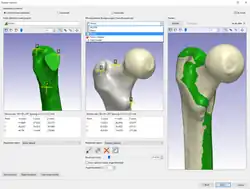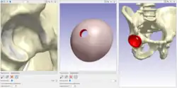 Screenshot of component being placed in hip model in Simpleware ScanIP