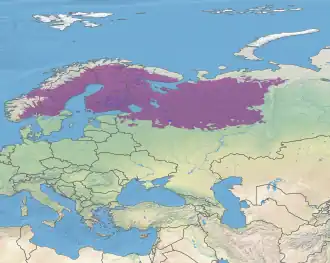 The Scandinavian and Russian taiga is an ecoregion within the taiga and boreal forests biome as defined by the WWF classification (ecoregion PA0608).[1] It is situated in Northern Europe between tundra in the north, temperate mixed forests in the south and the Urals montane tundra and taiga in the east. It occupies about 2,156,900 km2 (832,800 sq mi) in Norway, Sweden, Finland and the northern part of European Russia, being the largest ecoregion in Europe. In Sweden the taiga is primarily associated with the Norrland terrain.[2] The European Natura 2000 directive defines "Scandinavian and Russian taiga" as a broader area than the WWF, including parts of the temperate mixed forests in the region.[3]