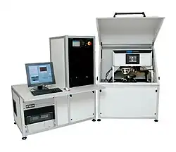In condensed matter physics, scanning SQUID microscopy is a technique where a superconducting quantum interference device (SQUID) is used to image surface magnetic field strength with micrometre-scale resolution. A tiny SQUID is mounted onto a tip which is then rastered near the surface of the sample to be measured. As the SQUID is the most sensitive detector of magnetic fields available and can be constructed at submicrometre widths via lithography, the scanning SQUID microscope allows magnetic fields to be measured with unparalleled resolution and sensitivity. The first scanning SQUID microscope was built in 1992 by Black et al.[2] Since then the technique has been used to confirm unconventional superconductivity in several high-temperature superconductors including YBCO and BSCCO compounds.