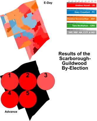 Winning party in each polling division of Scarborough—Guildwood at the 2022 Ontario general election