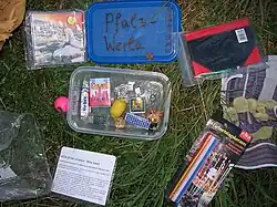 A scavenger hunt is a game in which the organizers prepare a list defining specific items that need to be found, which the participants seek to gather or complete all items on the list, usually without purchasing them.[1] Usually participants work in small teams, although the rules may allow individuals to participate. The goal is to be the first to complete the list or to complete the most items on that list. In variations of the game, players take photographs of listed items or be challenged to complete the tasks on the list in the most creative manner. A treasure hunt is another name for the game, but it may involve following a series of clues to find objects or a single prize in a particular order.