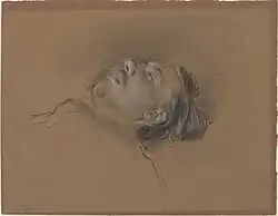 Scholars have devoted much attention to the identity of the fallen jockey. It is possible the fallen jockey is modeled after one of Degas's brothers. René Degas might have posed as the jockey.[2]: 53 However, his brother Achille is known to have posed for jockeys in Degas's other works. Degas's drawings show a figure which closely resembles Achille due to his hair, beard, and sideburns.[2]: 53