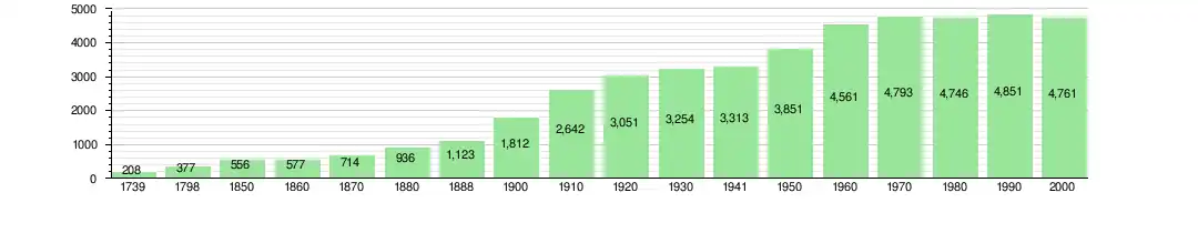 As of 2000, there were 1,882 people who were single and never married in the municipality. There were 2,336 married individuals, 315 widows or widowers and 228 individuals who are divorced.[9]