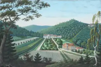 Starting in 1770, Landgrave Constantine of Hesse-Rotenburg had another representative palace built near the hunting lodge Blumenstein, which he named summer palace Blumenstein, along with a large English landschape park and gardens.[1][2] The Rotenburg Landgrave family regularly spend their summer months in the Wildeck Valley.[1] In September 1811, the Landgrave's daughter Clothilde celebrated her wedding to the Prince of Hohenlohe-Bartenstein here.[1][2]