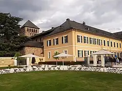 The church, Basilika, was originally built for the Benedictine monastery and dedicated to St. Johannes (St. John the Baptist). After the destruction during World War II it was rebuilt as a Romanesque basilica and has served as the Catholic parish church for the village Johannisberg. It is also used for concerts of sacred music, of local groups and for concerts of the Rheingau Musik Festival,[24] such as a performance of the Huelgas Ensemble.