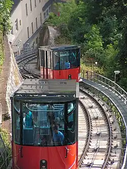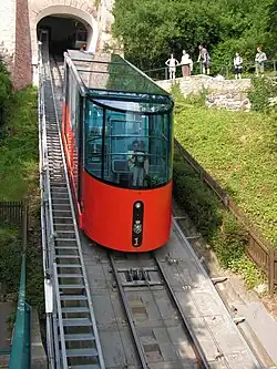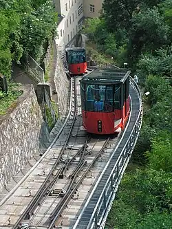 The Schlossbergbahn, or Schloßbergbahn (English: Castle Hill Railway), is a funicular railway in the Austrian city of Graz. It connects the city centre with the Schloßberg, a hill and the site of a demolished fortress, with extensive views over the city.[1]