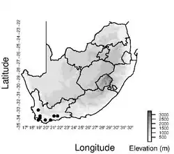 | Documented collection localities in South Africa | |