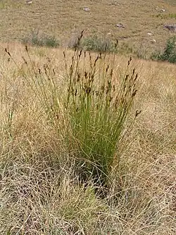 Schoenus galpinii is a species in family Cyperaceae, tribe Schoeneae.[3] Other notable genera in tribe Schoeneae include Lepidosperma, Oreobolus, Costularia, Tetraria and Gahnia.[3][4][5] The most closely related species to S. galpinii are other southern African Schoenus species, specifically, species in the S. cuspidatus and allies group.[1][3]