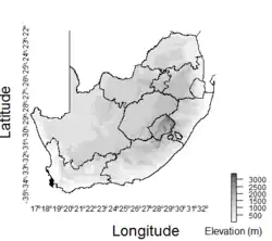 | Documented collection localities in South Africa | |