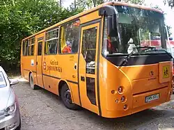 American-style yellow school buses were introduced in Kazakhstan in 2013, starting in Astana, when the private company Schoolbus, a school bus contractor, launched a demand-responsive student transport service. This initiative provided a safer and more structured alternative for students. Over time, similar services expanded to other cities and regions, enhancing both accessibility and safety.[33][34] As demand grew, urban areas began acquiring newer buses that more closely resembled American school buses, featuring their distinctive yellow color and safety features. The first domestically produced school bus was assembled in 2017 in Semey.[35]