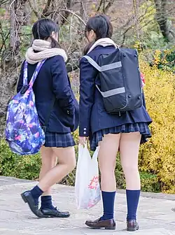 For boys, the uniforms generally include a button-up or polo shirt with either shorts (especially for summer wear) or long trousers, usually in grey or navy blue or the school colour. Some schools allow boys to wear shorts only in younger years, and they must wear long trousers once they are a senior (17-18). At others, even older boys wear shorts in summer due to the heat.[20] Where short trousers are to be worn, socks in school colours (more commonly white) are often required. Girls' uniforms generally include a checkered or striped dress (usually sleeveless or short-sleeved) worn over a blouse for summer and, in most secondary schools, girls wear a skirt as well as a button-up or polo shirt in winter with a blazer and tie. In a number of schools, girls are also permitted to wear a button-up or polo shirt and dark trousers.