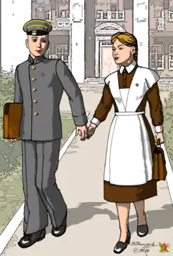 In August 2022, education minister Andrei Ivanyets announced plans for every Belarusian school to have its own compulsory school uniform by 2023.[29] In 2024, select schools in Minsk participated in a pilot scheme for a standardised school uniform.[30] Since April 15, 2025, each school in Belarus has been obligated to choose a uniform from a list of brands which are part of the state-owned Bellegprom concern.[31]