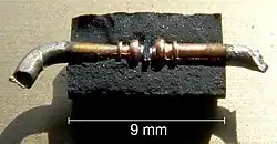 ![]() Various Schottky-barrier diodes: Small-signal RF devices (left), medium- and high-power Schottky rectifying diodes (middle and right) | |