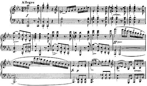 - in the C minor Sonata, certain passages in the first two movements resemble parallel passages from Beethoven's Piano Sonata No. 8, Op. 13 (the Pathétique), written in the same key.[75]