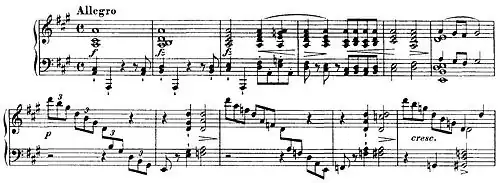 - in the A major Sonata, bars 200–206 from the end of the development section in the finale recall bars 51–55 from the first movement of Beethoven's Piano Sonata in C♯ minor, Op. 27, No. 2 (the Moonlight Sonata).[76]