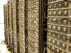 The General Purpose Cluster consists of 3,780 IBM System x iDataPlex dx360 M3 nodes, each with 2 quad-core Intel Nehalem (Xeon 5540) processor running at 2.53 GHz, totaling 30,240 cores in 45 racks. (An iDataPlex rack cabinet provides 84 rack units of space.[4]) All nodes are connected with Gigabit Ethernet, and DDR InfiniBand is used additionally in 864 nodes to provide high-speed and low-latency communication for message passing applications.[5] The computer will use the same amount of energy which could be used to power four thousand homes, and is water-cooled. To utilize the cold Canadian climate, the system is notified when external air goes below a certain temperature, at which time the chiller switches over to use the "free-air" cooling available. SciNet, IBM Corp and Compute Canada collaborated on the supercomputer venture.[2][6][7] The new computer system at U of T's SciNet is the largest Intel processor based IBM installation globally.[8]