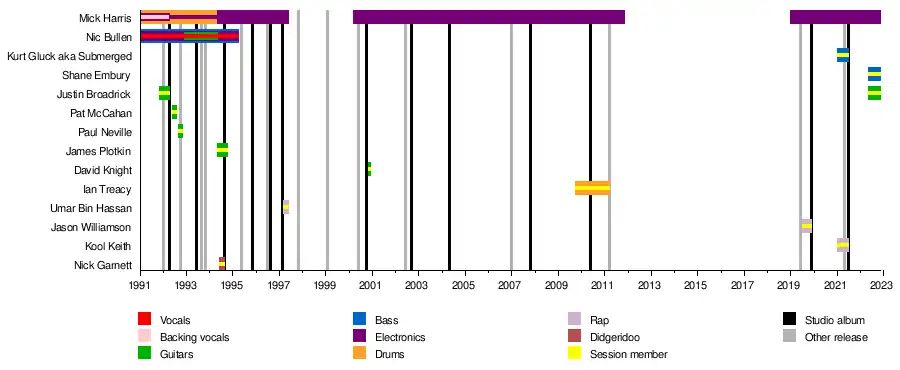 - Nic Bullen - vocals, bass, electronics (1991–1995), guitar (1992–1994)