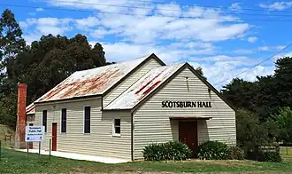 In 1891 the Scotsburn Hall was built, funded by donations and land donated by the Eason family. Since its establishment it has been utilised by the local primary school, the Scotsburn Tennis Club, and local residents for various functions.