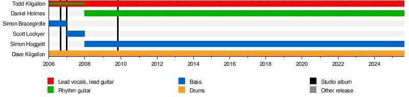 The band started in 2006 with brothers Todd (guitar, vocals) and Dave Kilgallon (drums), and bassist Simon Bracegirdle.[1] After the first album, Released From Damnation (2006), Bracegirdle was replaced with Scott Lockyer. After Bury the Lies, Simon Hogget replaced Lockyer, and Daniel Holmes joined as a second guitarist.[1] In 2008, Dave Kilgallon joined the fellow Australian band Mortification as their drummer.[3]