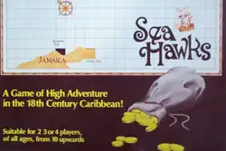 Sea Hawks is a game for 2–4 players, each of which is an 18th-century pirate captain sailing the Spanish Main, searching for buried treasure. There are ten sea chests on the map, but only one contains treasure. The first captain to discern which one contains the treasure and transport it to their home port is the winner.[1]