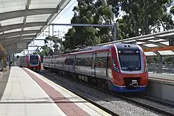 On 2 January 2013, the line closed to allow for its electrification and extension, with trains being replaced by bus services.[5] Rail services resumed on 1 December 2013.[6] The completed project was opened by the South Australian Transport and Infrastructure Minister Tom Koutsantonis on 18 January 2014.[7] Electric train services commenced in February 2014 after testing was completed on the line.[8][9] At the time, only four 4000 class electric multiple units had entered service, so most services continued to be operated by 3000 class railcars.