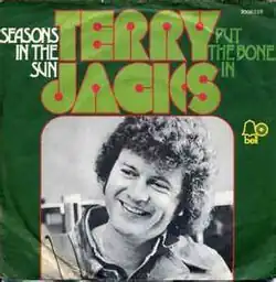 Jacks's version was released in the United States in December 1973 and entered the Billboard Hot 100 a month later. On 2 March 1974, the song began a three-week run at number one atop the Hot 100 and remained in the top 40 until nearly Memorial Day weekend. Jacks's version also spent one week on the Easy Listening charts.[10] Billboard ranked it as the number two song for 1974.[11] Although he released several other singles that were moderately successful in Canada, "Seasons in the Sun" would become Jacks's only major solo hit in the United States.[12] In Canada, the single (Gold Fish GF 100) reached number one on the RPM magazine charts on 26 January 1974, where it remained for four weeks.