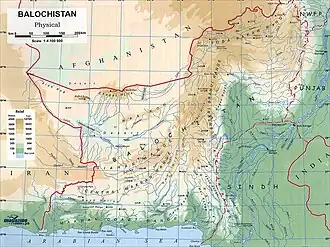 ![]() Physical Map of Balochistan, Pakistan, where the fighting took place. | |||||||