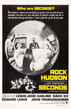 Seconds is a 1966 American science fiction psychological horror[3] film directed by John Frankenheimer and starring Rock Hudson, Salome Jens, and Will Geer.[4] The film tells the story of a middle-aged New York banker who, disillusioned with his life, is contacted by an agency known as "The Company" which specializes in providing "rebirths" under new identities and appearances altered by plastic surgery. The screenplay by Lewis John Carlino is based on the 1963 novel of the same title by David Ely.