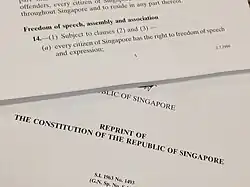 - Constitution of the Republic of Singapore (1985 Rev. Ed., 1999 Reprint), Article 14.