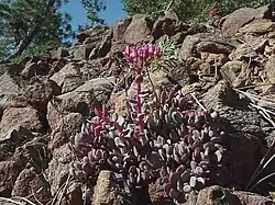 Sedum eastwoodiae is a rare species of flowering plant of the stonecrop Crassulaceae family.[2] It is known by its common name Red Mountain stonecrop. It is endemic to Mendocino County, California, where it is known from only four occurrences on Red Mountain, near Ukiah.[1][3] The total number of plants in existence is estimated to be around 5,300.[1] They can be found on steep, exposed, rocky mountain slopes of serpentine substrate. This species has also been treated as a subspecies of Sedum laxum.[4]