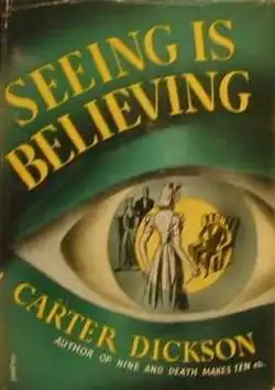 Seeing is Believing (also published as Cross of Murder) is a mystery novel by the American writer John Dickson Carr, who published it under the name of Carter Dickson.[1]: 156 It is a whodunnit and features the series detective Sir Henry Merrivale and his associate, Scotland Yard's Chief Inspector Humphrey Masters.[1]: 41 The novel was originally published in 1941.[1]: 156