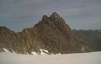 ![]() West ridge of the Seekogel from the Löcherferner (glacier). | |