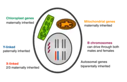 - ^ Greiner S, Sobanski J, Bock R (January 2015). "Why are most organelle genomes transmitted maternally?". BioEssays. 37 (1): 80–94. doi:10.1002/bies.201400110. PMC 4305268. PMID 25302405.