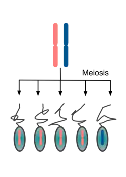 Sexual reproduction involves the mixing of genes from two individuals. According to Mendel's Law of Segregation, alleles in a sexually reproducing organism have a 50% chance of being passed from parent to offspring. Meiosis is therefore sometimes referred to as "fair".[29]