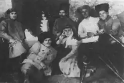 Semen Karetnyk was born into extreme poverty, growing up a poor peasant in the small southern Ukrainian town of Huliaipole. He worked as a hostler until the outbreak of World War I, upon which he was drafted into military service and worked his way through the ranks until he became an ensign. By the time of the Russian Revolution, Karetnyk had gained much military experience, which he utilized upon his return to Ukraine, when he became a leading partisan of the Makhnovshchina.[1] Karetnyk's strong anarchist convictions brought him into the favor of the local revolutionary leader Nestor Makhno,[2] with Karetnyk going on to become the second-in-command of the Revolutionary Insurgent Army of Ukraine.[1]