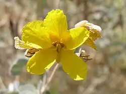 Senna covesii (desert senna, Coues' senna,[1] rattleweed, rattlebox, dais, or cove senna) is a perennial subshrub in the family Fabaceae, native to the Mojave Desert and Sonoran Desert in southeastern California, southern Nevada, and Arizona in the United States, and northern Baja California in Mexico. It is found on desert plains and in sandy washes between 305 and 914 m above sea level, and is very common in Joshua Tree National Park. The specific epithet honors ornithologist Elliott Coues.