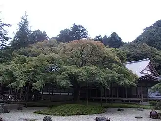 Afterwards the priest living quarters were ruined during the long war between Muromachi and Sengoku periods, there only remains the priest's lodge. In 1573, however, the main hall was founded by Kuroda Tsugutaka, the 6th feudal lord of Kuroda clan. Big maple trees, which has been designated as a natural monument of Fukuoka prefecture, has been said to be planted by him.