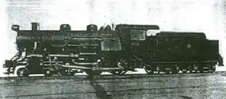 Having become indispensable on branchline use, it was decided to modernise the Teho type, and in 1925–26 local engineers developed a derivative locomotive.[1] The result was the テホロ (Tehoro) class, the first of which was built in July 1927 and the second in October of the same year, both at Sentetsu's Gyeongseong Works.[4] These featured a single-stage compressor, and improvements included the expansion of the heat transfer area, improved power transfer and brakes, an automated smoke box door, and other improvements. The Tehoro class was designed for use on both passenger and freight trains, and was used primarily on the Gyeongui and Gyeongbu lines.[1] The next thirteen came in 1929, five from Gyeongseong and four each from Mitsubishi and Hitachi's Kasato works;[1][4] the last of these became the largest producer of Tehoro class locomotives.[1] Another eighteen were delivered in 1937, nine each from Hitachi Kasato and Kawasaki,[1] and in 1938, as part of Sentetsu's general renumbering, the Tehoro class locomotives in service received numbers テホロ1 through テホロ39.[4] Finally, between 1939 and 1941, 56 more were delivered, mostly from Hitachi Kasato.[1]