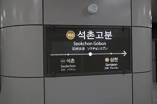Seokchon Gobun Station is a railway station on Seoul Subway Line 9. It opened on December 1, 2018.[1][2]