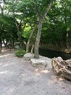 There is a camellia forest behind the main hall (daeungjeon) of the temple. The trees are roughly 500 years old, and are designated by South Korea as a natural monument. The temple is known for its worship of the Ksitigarbha Bodhisattva, and for its annual camellia festival.