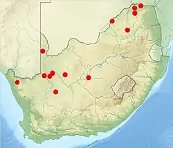 It is native to sandy regions of southern Namibia (Kalahari to Naukluft),[2] Botswana and northern South Africa.