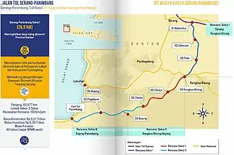 - ^ Jayasantika, Yadi (3 October 2021). "Membelah Tiga Kabupaten, Jalan Tol Serang - Panimbang Akses Cepat Pertama di Banten Selatan, Ini Profilnya" [Crossing three regencies, Serang-Panimbang Toll Road the first express access to South Banten, the profile]. Kabar Banten (in Indonesian). Indonesia. Retrieved 19 July 2022.