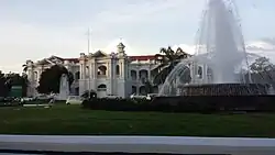 In February 2018, a further announcement was made regarding the formation of Seremban City Hall (Dewan Bandaraya Seremban), which was poised to be completed in April. However, the official declaration of Seremban as a city would only occur in January 2019, in conjunction with the birthday of the state's ruler Tuanku Muhriz (January 14).[14] After the change in the ruling coalition after the 14th General Election ushered in a new state government, the new Mentri Besar Aminuddin Harun announced his decision to push back the official promotion towards the end of the year, citing the inability of contractors to complete refurbishment works at the new City Hall in time. However, the postponement would allow the authorities time to iron out any flaws in Seremban's infrastructure and amenities.[15]