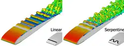 The serpentine plasma actuator represents a broad class of plasma actuator. The actuators vary from the standard type in that their electrode geometry has been modified in to be periodic across its span.[1][2]