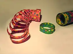 Serpentine streamers can be used as party favors. The streamers usually come in rolls that contain multiple strips. They have to be separated into smaller rolls before use.